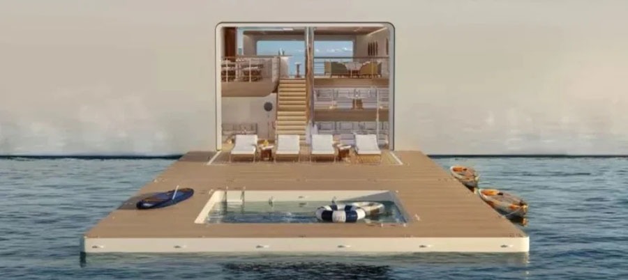 Ege Turuna Mikonos ve Santorini’den başlayacak olan mega yattaki 95 suit dairenin her birinin villa hissi yaratacak kalitede döşendiği konfor, mahremiyet ve iç mekanlardan, balkonlardan ve güvertelerden büyüleyici panoramik deniz manzarası ön planda tutulduğu görüldü.