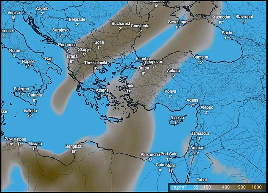 Meteorolojik değerlendirmelere göre, Kuzey Afrika’daki Sahra Çölü üzerinden atmosfere karışan toz zerrecikleri, rüzgârların etkisiyle Ege Bölgesi’ne kadar ulaştı. Hava akımlarıyla taşınan yoğun toz bulutu, Muğla ve çevresinde puslu ve karanlık bir görünüme neden oldu.