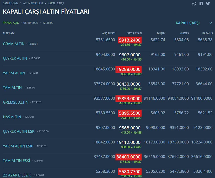 KAPALI ÇARŞI ALTIN FİYATLARI