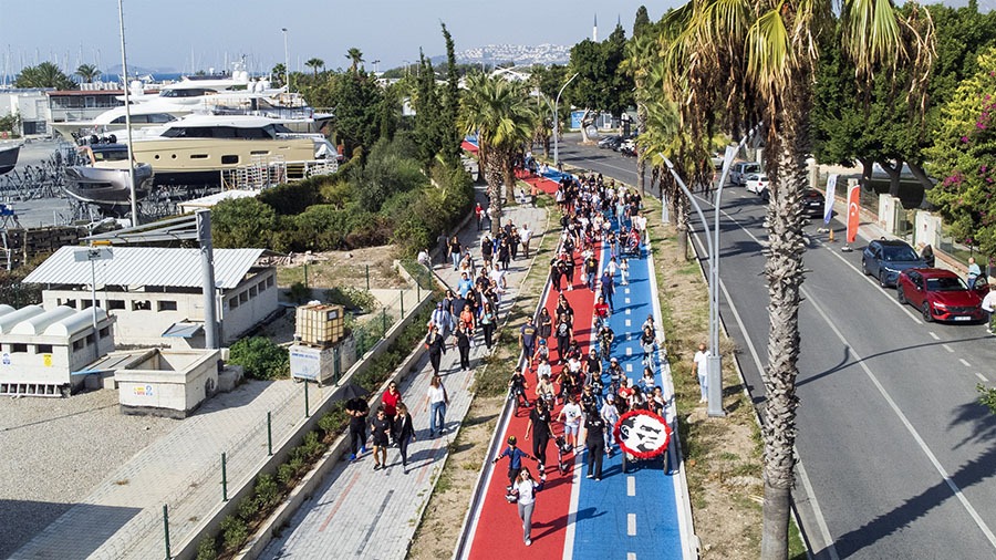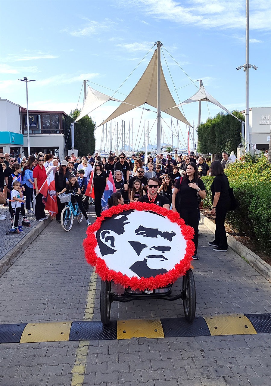 2 Kasım 2025 Pazar günü Turgutreis Marina’da düzenlenen “Atatürk İçin Yol Alıyoruz” etkinliğinde öğrenciler, öğretmenler ve veliler bir araya gelerek bisiklet sürdü, yürüyüş yaptı, paten ve scooter kullanarak Atatürk’e olan sevgi ve bağlılıklarını gösterdi.