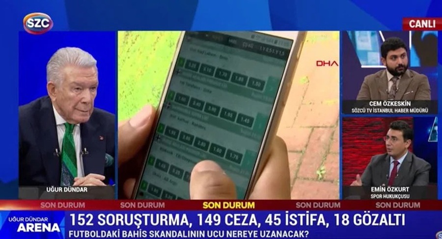Türkiye’yi sarsan bahis soruşturmasına şike soruşturması da eklendi. Duayen Gazeteci Uğur Dündar’ın sunduğu Arena programına konuk olan Spor Hukukçusu Emin Özkurt, soruşturmalara FIFA ve UEFA’nın etkisini ve genel sürecini yorumladı