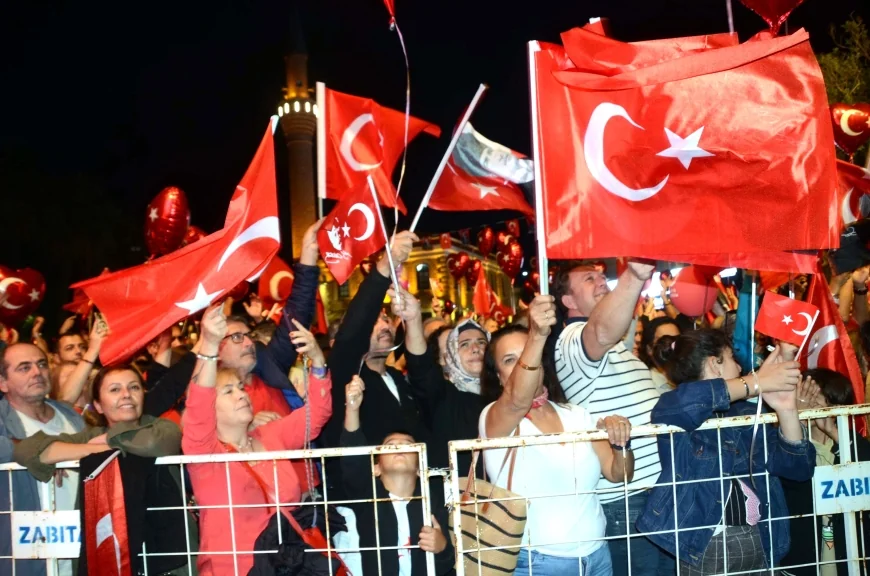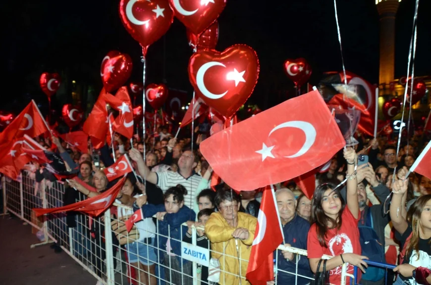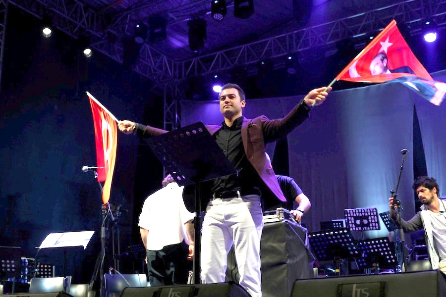 Bodrum Belediye meydanı kırmızı beyaz oldu. Meydanda sahne alan Fettah Can & Senfoni Orkestrası ‘nın binlerce kişi coşku içinde izledi.