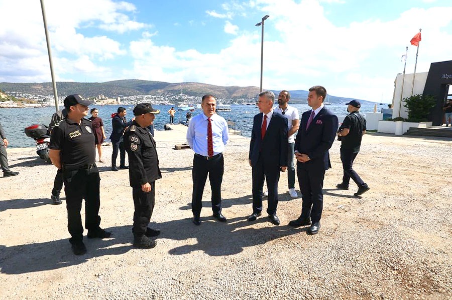 Muğla Valisi Dr. İdris Akbıyık, Bodrum Kaymakamı Ali Sırmalı, Belediye Başkanı Tamer Mandalinci ve İl Emniyet Müdürü Süleyman Karadeniz ile birlikte proje alanını gezdi