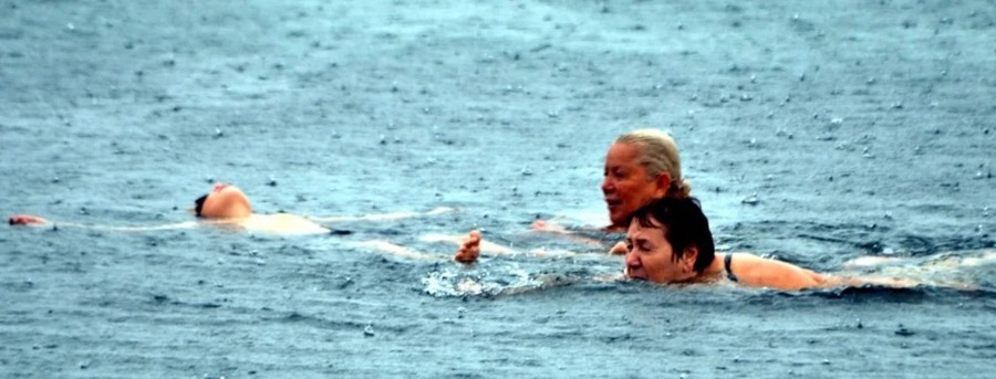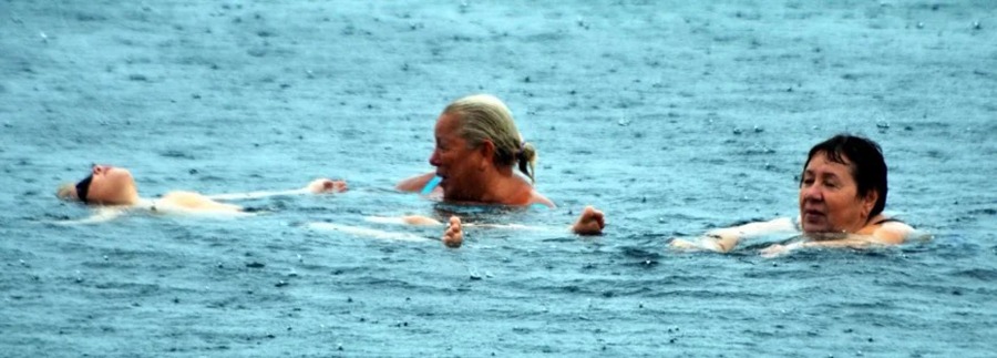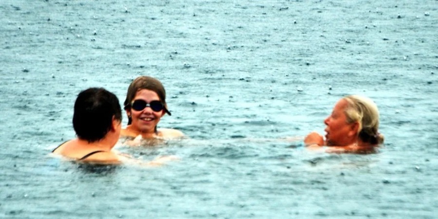 Bodrum’da bu sabah saatlerinden itibaren başlayan ve aralıklarla devam eden yağışlar ilçede bulunan turistlerin denize girmesini engelleyemedi. 22 derece hava ve 18 derece deniz suyu sıcaklığını fırsat bilen turistler yağmur altında denize girdi yüzmenin keyfini çıkardı.