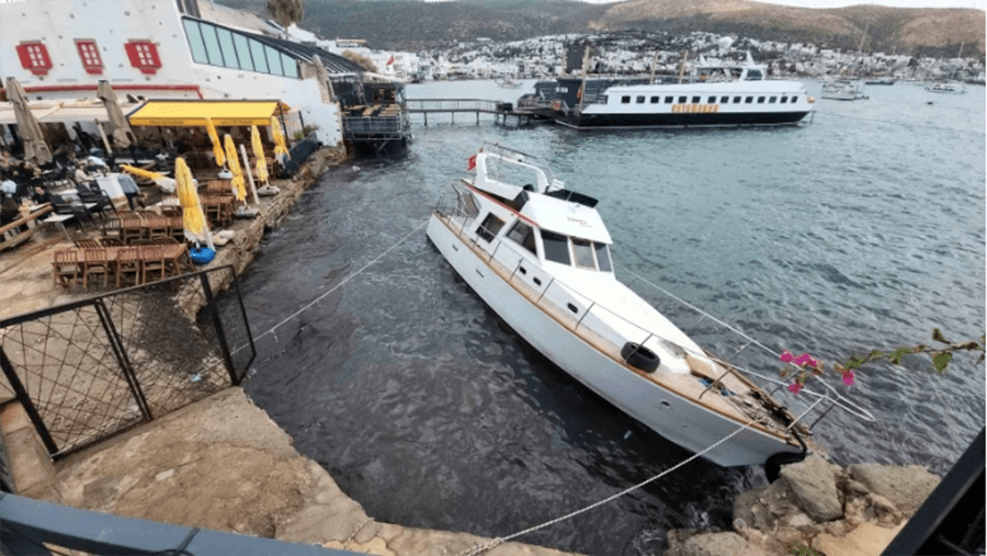 Bodrum kalesi yakınlarından karaya sürüklenen yatta ise maddi hasar meydana geldi, yatın kurtarılması için çalışmalara başlanacağı açıklandı.