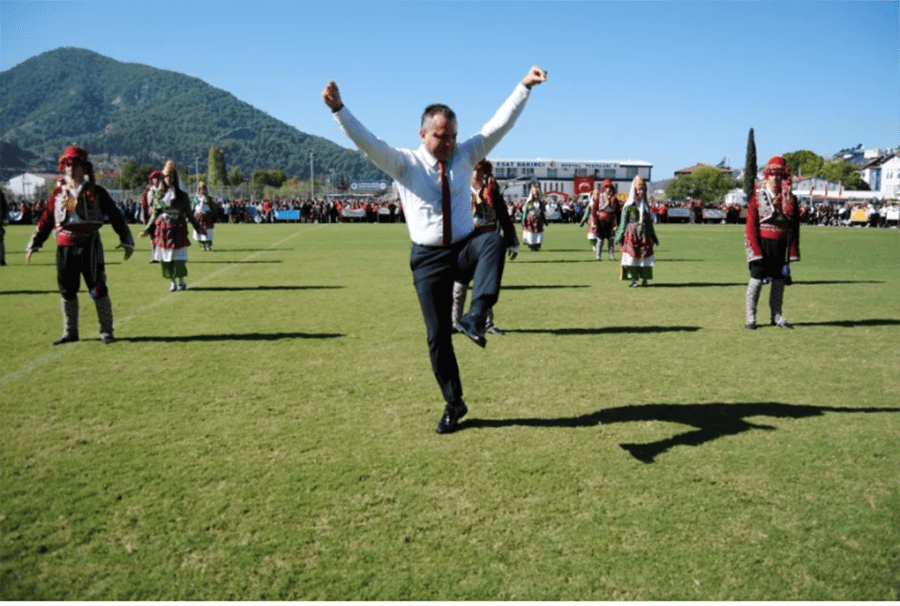 Törene damga vuran anlardan biri ise Fethiye Kaymakamı Fatih Akkaya’nın Türk halk oyunları ekibine sürpriz yaparak zeybek oynaması oldu. Bu anlar, izleyenler tarafından uzun süre alkışlandı. Kutlamaların finalinde ise tüm halk oyunları ekipleri birlikte sahneye çıkarak muhteşem bir gösteri sundu. Resmi geçit töreninde Fethiye’deki okullar, öğretmenler ve öğrenciler geçişlerini gerçekleştirirken, Moldova ve Ukrayna ekipleri de geçit törenine katılarak bayram coşkusuna ortak oldu.