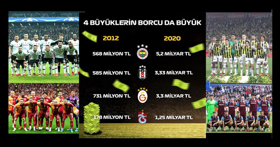 Karadeniz ekibi Trabzonspor ise diğer üç kulübe kıyasla daha düşük borç seviyesinde kalarak, 4,25 milyar TL net borç açıkladı.