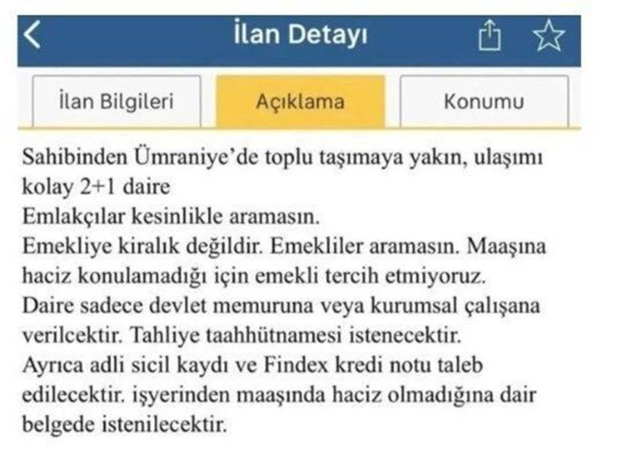 “Emekliye kiralık değildir” başlıklı ilan veren emlak şirketine idari para cezası uygulandı