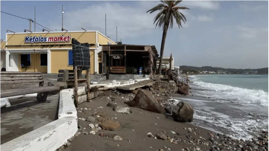 İstanköy şehir merkezindeki sahil yoluna çıkan dev dalgalar onlarca otomobili sürükleyip hasara yol açtı. Altyapı, su ve elektrik hatlarından büyük hasar oluştu, belediye acil durum ilan etti.