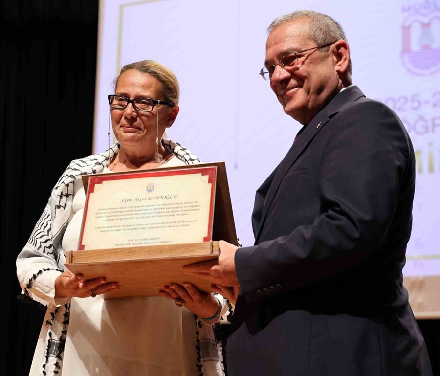 Muğla Sıtkı Koçman Üniversitesi 2025-2026 Eğitim ve Öğretim Yılı akademik Açılış törenine katılan ‘Anadolu’dan Gazze’ye’ Platformu Başkan Yardımcısı aktivist Ayçin Kantoğlu ‘İlk Söz Gazze’ konulu konuşma gerçekleştirdi. Muğla Sıtkı Koçman Üniversitesi AKM 15 Temmuz Demokrasi Şehitleri Salonunda konuşan aktivist Ayçin Kantoğlu, “Kendisinin üstün olduğunu iddia eden, başkalarını katledebileceğini, katledebiliyor olduğunu iddia eden, hatta çocukların bile katledebilir olduğunu iddia ediyor. Sayın Cumhurbaşkanı’nın bir tespiti var, İslam dünyası sınıfta kaldı, Batı Devletleri sınıfta kaldı ve sonunda halklardan bir irade ortaya çıktı. Bu organizasyona Mavi Marmara ile başlayan Madleen ve Hanzala ile devam eden ve tam olarak da adını Sumud koydukları bir eylem ortaya çıktı” dedi.