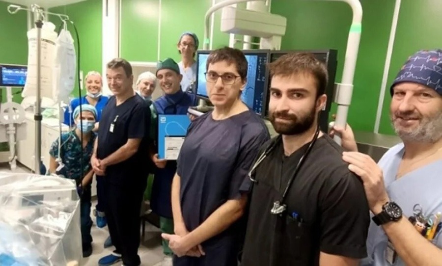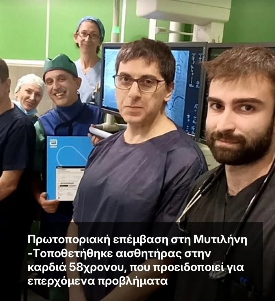 Midilli Hastanesi’ne gelen kardiyolog Anastasios Milkas ve ekibi, Amerika, İspanya, İtalya ve Atina’dan gelen doktorların ve teknoloji uzmanlarının da katılımıyla, kalp yetmezliği bulunan 58 yaşındaki bir hastanın kalbine CardioMEMS Trademark HF System adı verilen bir sensör yerleştirdi.