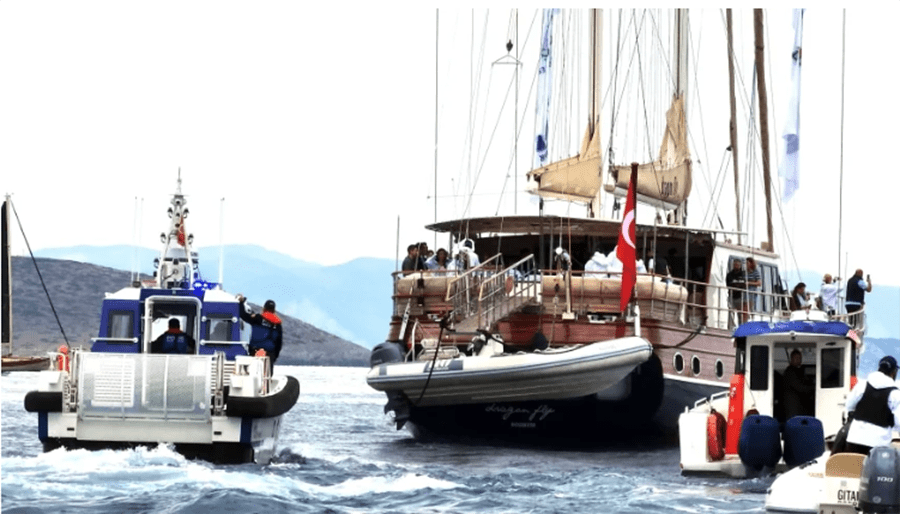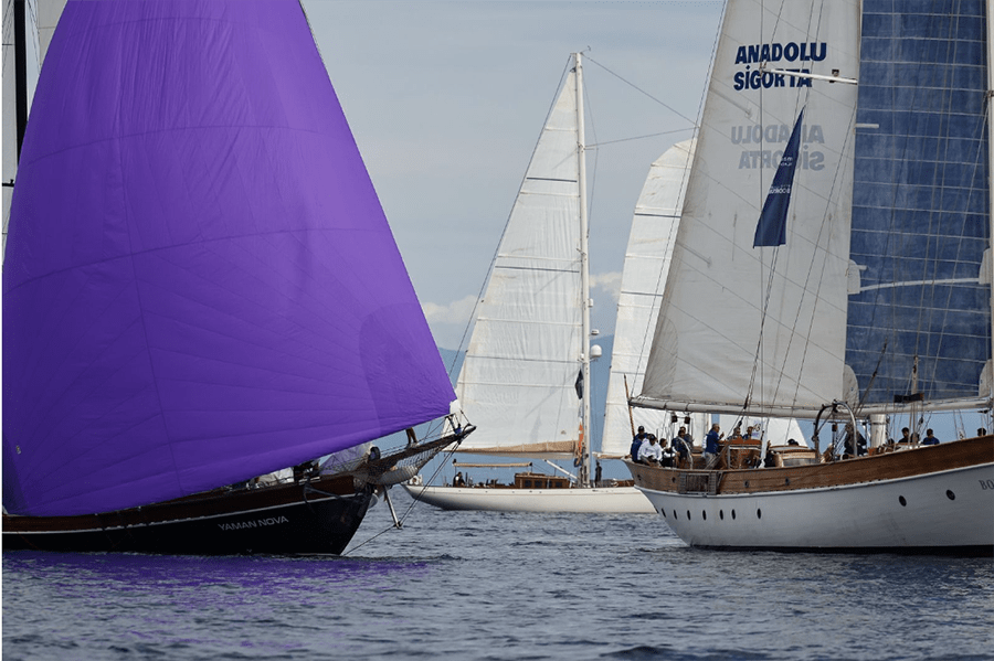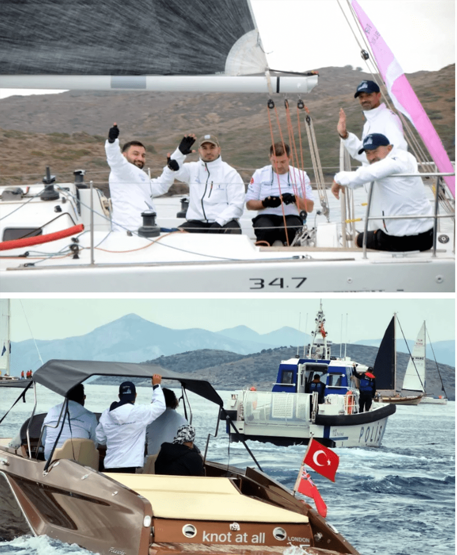 Yarışmaların sıtart alanında yelkenli ahşap bir teknede dev Kemal Atatürk imzasının yaklaşık 40 metrekarelik yelkene işlendiği görüldü. Yatçılara, sahil güvenlik, polis ve gümrük muhafaza botlarının eşlik ettiği görüldü.