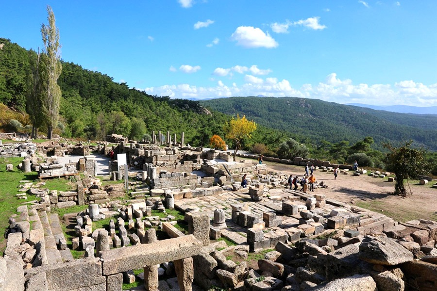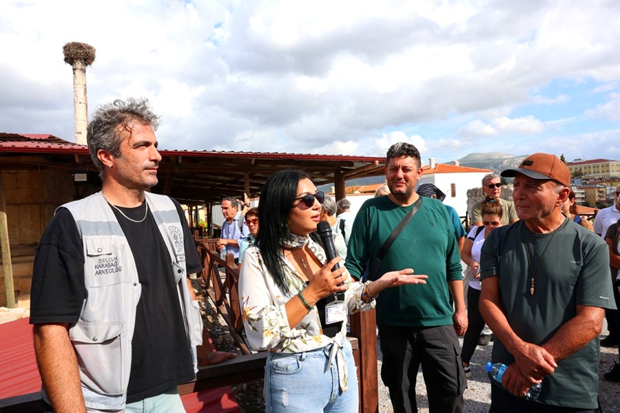 Topaloğlu’nun açılış konuşmasının ardından Milas Müzesi Uzmanı Arkeolog Selçuk Karabağ, anıt mezar ve müze kompleksi ile yapılan çalışmalar hakkında paylaşımlarda bulundu. Ardından rotadaki Labranda kutsal alanına ziyaret gerçekleşti. Ekip üyesi Arkeolog Ekrem Cengiz ve Serap Topaloğlu kutsal alanın tarihi ve yapıları hakkında detaylı bilgi verdi.