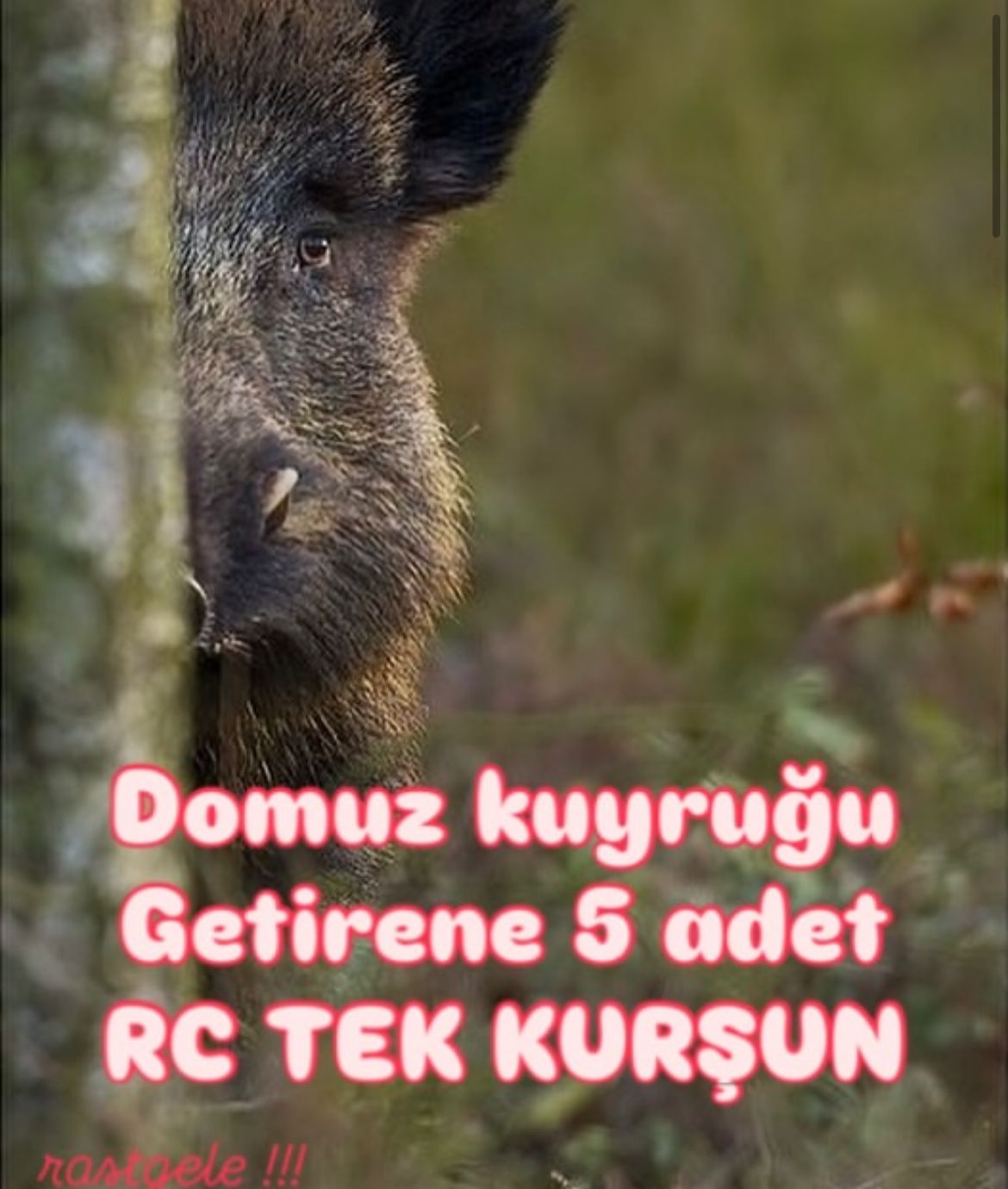 “T.C. Tarım ve Orman Bakanlığı Muğla İl Müdürlüğü’nce, 5996 sayılı Kanunun 15. Maddesinin 3. Fıkrası uyarınca Devlet Ormanlarında bulunan zararlı organizmalarla (Yaban Domuzu) yapılan mücadele kapsamında, av günlerinde vurulan yaban domuzlarının kuyruklarını (Muğla merkez ve ilçeler için geçerli) ilçe Tarım ve Orman Müdürlüklerine getiren avcılarımıza kuyruk başına 5 adet RC tek kurşun tutanak karşılığı verilecektir.”