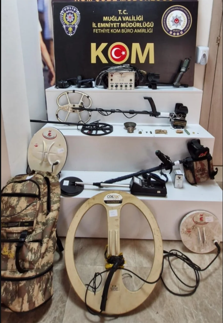 Muğla İl Emniyet Müdürlüğü Kaçakçılık ve Organize Suçlarla Mücadele Şube Müdürlüğü ekiplerince, Fethiye ve Seydikemer ilçelerinde, tarihi eser bulabilmek için kaçak kazı yapıldığı, elde edilen tarihi eserlerin alıcılar vasıtasıyla koleksiyonculara satıldığı bilgisi alınması üzerine yapılan operasyonlarda