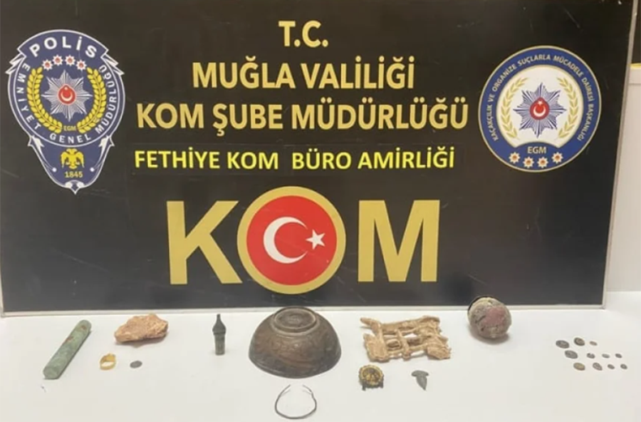 Muğla İl Emniyet Müdürlüğü Kaçakçılık ve Organize Suçlarla Mücadele Şube Müdürlüğü ekiplerince, Fethiye ve Seydikemer ilçelerinde, tarihi eser bulabilmek için kaçak kazı yapıldığı, elde edilen tarihi eserlerin alıcılar vasıtasıyla koleksiyonculara satıldığı bilgisi alınması üzerine yapılan operasyonlarda