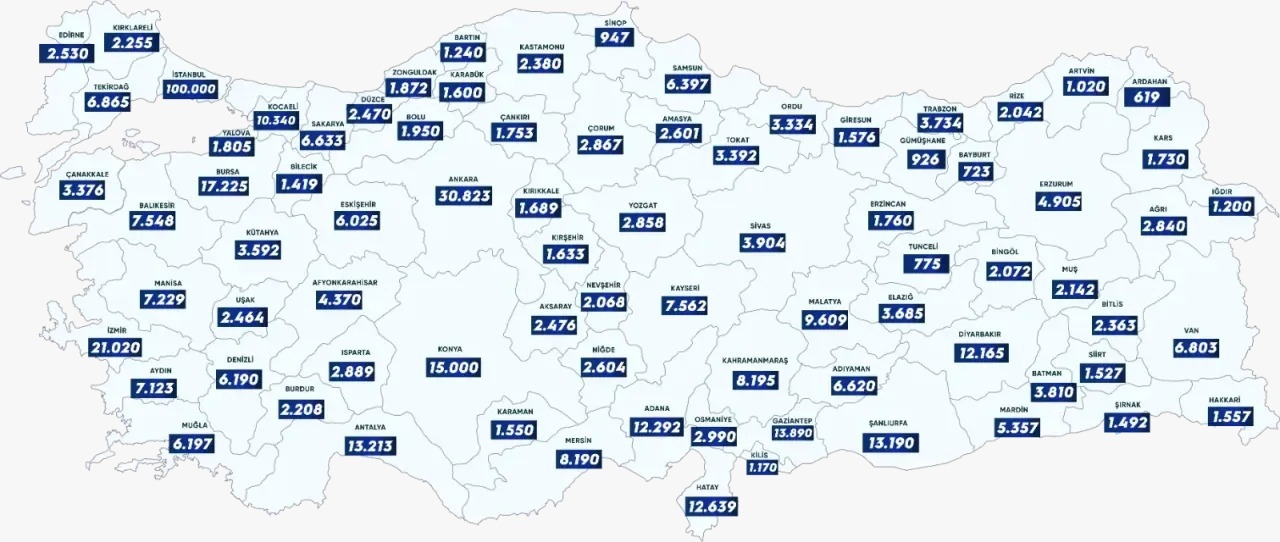Konut sayılarının belirlenmesinde illerin nüfus yoğunluğu, kira artış oranları ve barınma talebi dikkate alındı.