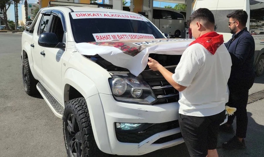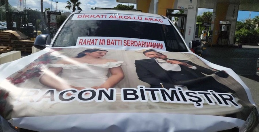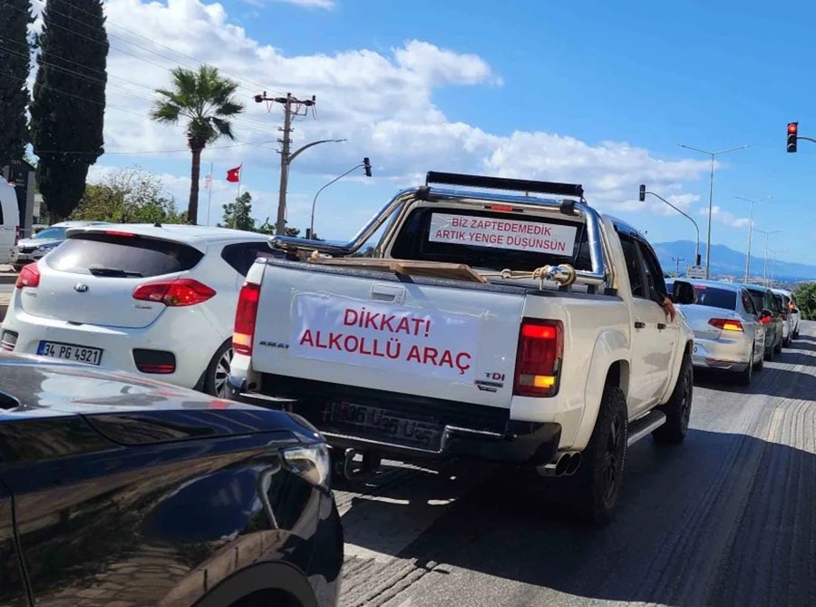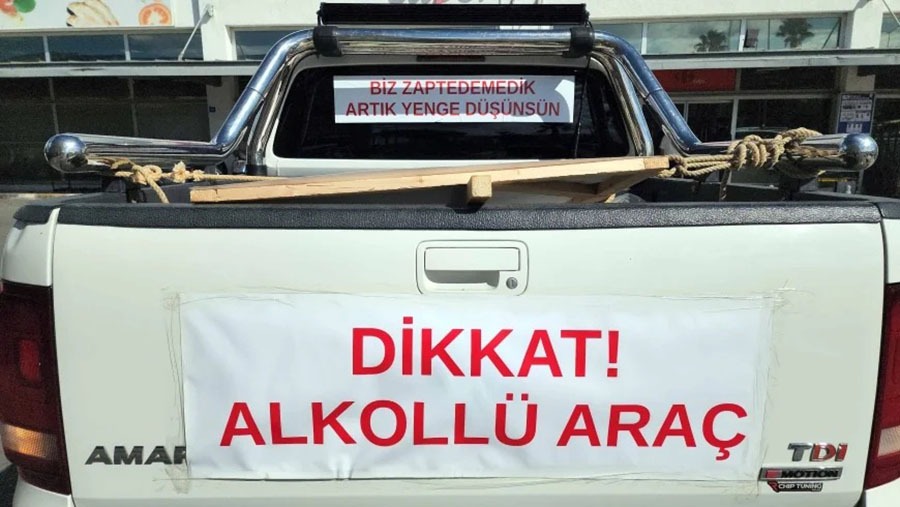 Bodrum^da yeni evlenecek gencin yapılacak düğünü öncesinde geleneksel ağırlık taşımak için hazırlanan kamyonet arkasında yazılı “Dikkat Alkollü Araç” ve “Biz Zaptedemedik Artık Yenge Düşünsün” pankartlarıyla Bodrum trafiğine çıkınca ilginç görüntülere neden oldu.