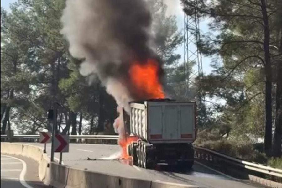 Muğla Sakar Geçidi’nde seyir halindeki bir kamyon bilinmeyen bir nedenle alev aldı. Bölgeye sevk edilen itfaiye ekiplerinin yangına müdahalesi sürüyor.