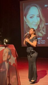 Alpago Nurol Kültür Merkezi’nde düzenlenen etkinlikte, Mustafa Kemal’in Kocatepe’de çekilen fotoğrafından ilham alarak yazdığı “Kocatepe” şiirini de okudu.