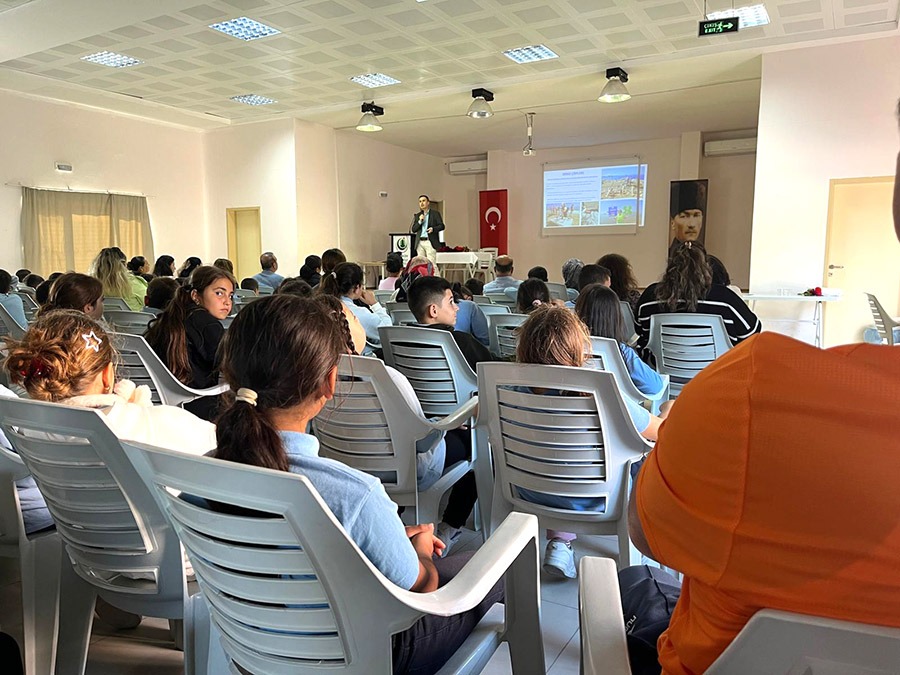 Öğrenci, öğretmen, veliler ve idari kadronun katılımı ile gerçekleşen eğitimde TÜRÇEV Muğla İl Koordinatör Yardımcısı Abdullah Tan tarafından TÜRÇEV ve Çevre Eğitim Programları tanıtıldı. Eğitim öncesinde okulun program destekçisi Blue Dreams Resort oteli tarafından ikramda bulunuldu ve akran zorbalığını konu alan hediye kitap dağıtımı gerçekleşti. Yeni öğretim yılında Eko Okul Programı’na hem ilkokul hem de ortaokul kısmı ile dahil olan okulun öğrenci, öğretmen ve idari kadrosunun heyecanı eğitim boyunca hissediliyordu. Bunun nedeni okulun programı başarılı ile tamamladığı takdirde Muğla’da devlet okulları arasında ortaokul kısmında ilk ve ilkokul kısmında 2. okul olması. Okul Müdürü Alirıza Kozak eğitim öncesi yaptığı konuşmada “Hep birlikte bu projeyi sürdüreceğiz. Hep birlikte diyorum çünkü bunun kahramanları siz öğrencilersiniz. Bu proje daha önce yaptığımız projelerin devamı gibi, daha kolay adapte olacağınız çevremizle ilgili bir proje. Hedefimizde ne var? 2027 yılında yeşil bayrağımıza kavuşmak. Bunun için yaklaşık 3 dönem hazırlığımız var. Diğer projelerde gösterdiğimiz başarıyı bu projede de göstereceğimize inanıyorum.” dedi.