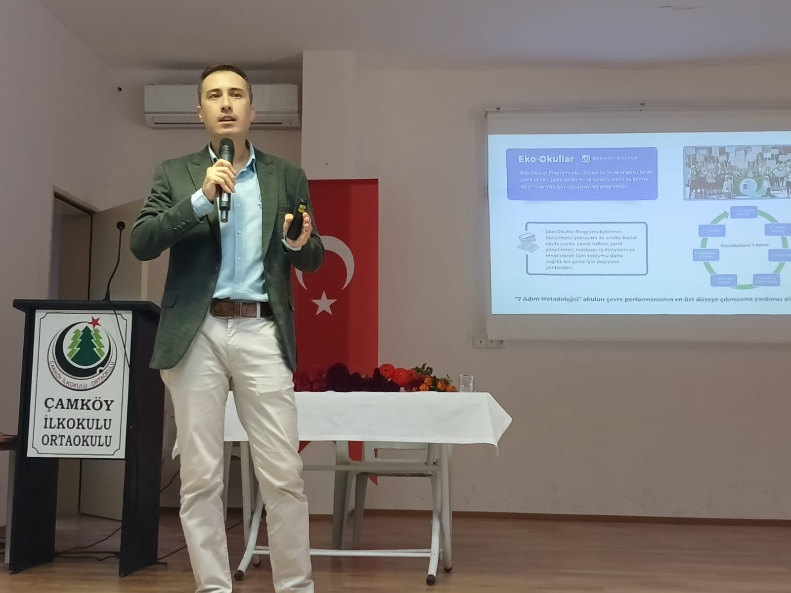 Muğla Milas Çamköy İlkokulu-Ortaokulu’ nda TÜRÇEV Muğla İl Koordinatörlüğü tarafından Eko Okul Programı bilgilendirme eğitimi yapıldı.