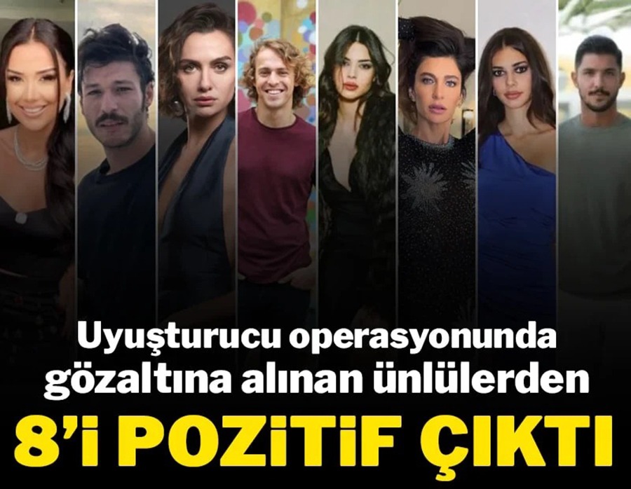 İstanbul’da, şarkıcı, oyuncu ve fenomenlere yönelik uyuşturucu soruşturmasında ifadeleri alınan 19 kişiden Dilan Polat, Derin Talu, Deren Talu, Birsen Berrak Tüzünataç, Birce Akalay, Kubilay Aka, Metin Akdülger, Kaan Yıldırım’ın testi pozitif çıktı.