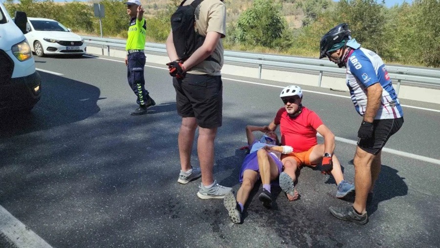 Kazadan sonra olay yerine gelen polis ekipleri yolun ortasında yaralı olarak yatan sporcular için geniş güvenlik önlemi aldı.