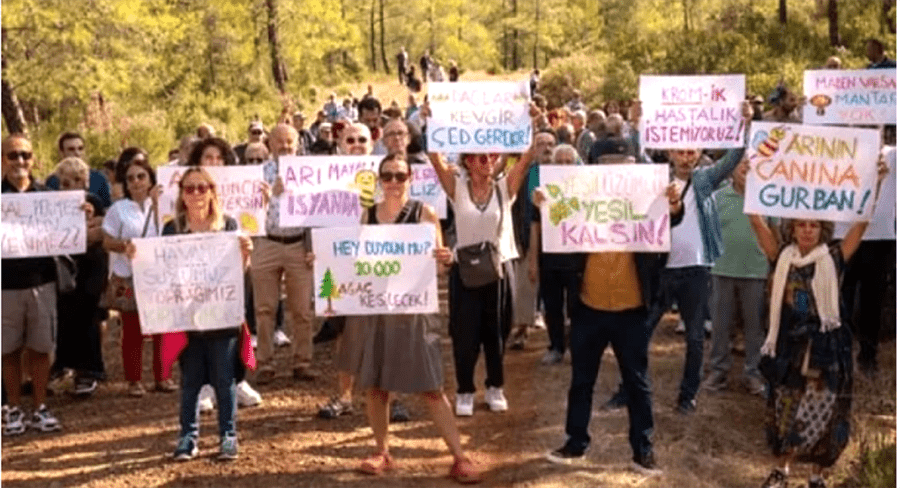 Muğla’nın Fethiye ilçesinde yapılması planlanan krom maden ocağına karış köylüler ve doğaseverler yapılacak keşif öncesinde eylem yapıp madene tepki gösterdi. Mahalle Muhtarı Ferhat Uysal “Bu dağlar, bu sular bizim geçim kaynağımız. Hayvancılığımız, tarımımız bu kaynaklara bağlı. Madenle birlikte yaşam alanlarımız yok edilecek. Biz maden istemiyoruz. Kararlar masa başında değil, bu dağlarda alınsın” dedi.