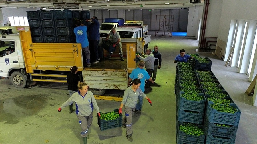 Bodrum Belediyesi Tarımsal Hizmetler Müdürlüğü koordinesinde Park ve Bahçeler ile Destek Hizmetler müdürlüklerinin de destek verdiği çalışmalarda hasadı yapılan Yeşil Bodrum Mandalinleri bahçelerden toplanarak Herodot Kültür Merkezi’ndeki kapalı fuar alanında toplandı. Burada palet sistemine göre yerleştirilen Yeşil Bodrum Mandalinleri, tırlara yüklenerek ürünlerin işleneceği Denizli’deki meyve suyu fabrikasına sevk edildi.
